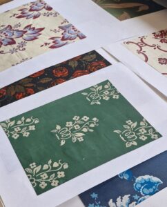 A recurring theme this trip was archival designs and fabrics which capture an authentic, story-rich aesthetic. Our archive room at the mill is often a key topic of conversation, housing books and hand painted artworks spanning generations. The appetite for boho-inspired and heritage-rooted visuals remains a strong trend for spring summer, especially when translated as luxury jacquards.